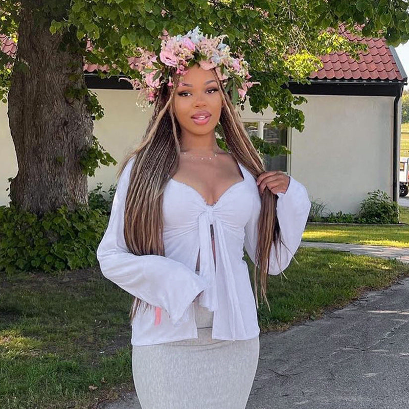 Bordeaux | Knotted Front Long Sleeve Top White