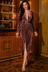 Neoma | Velvet Long Sleeve Belted Gown Dark Brown