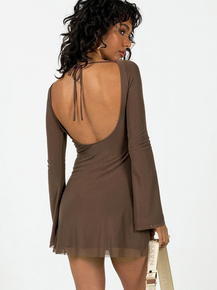 Sibyl | Backless Long Sleeve Mini Dress Dark Brown