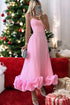 Simone | Flowy Ruffle-Hem Spaghetti Strap Midi Dress Pink