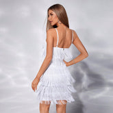 Volute | Sparkling Sequin Fringe Mini Dress for Party Glam White